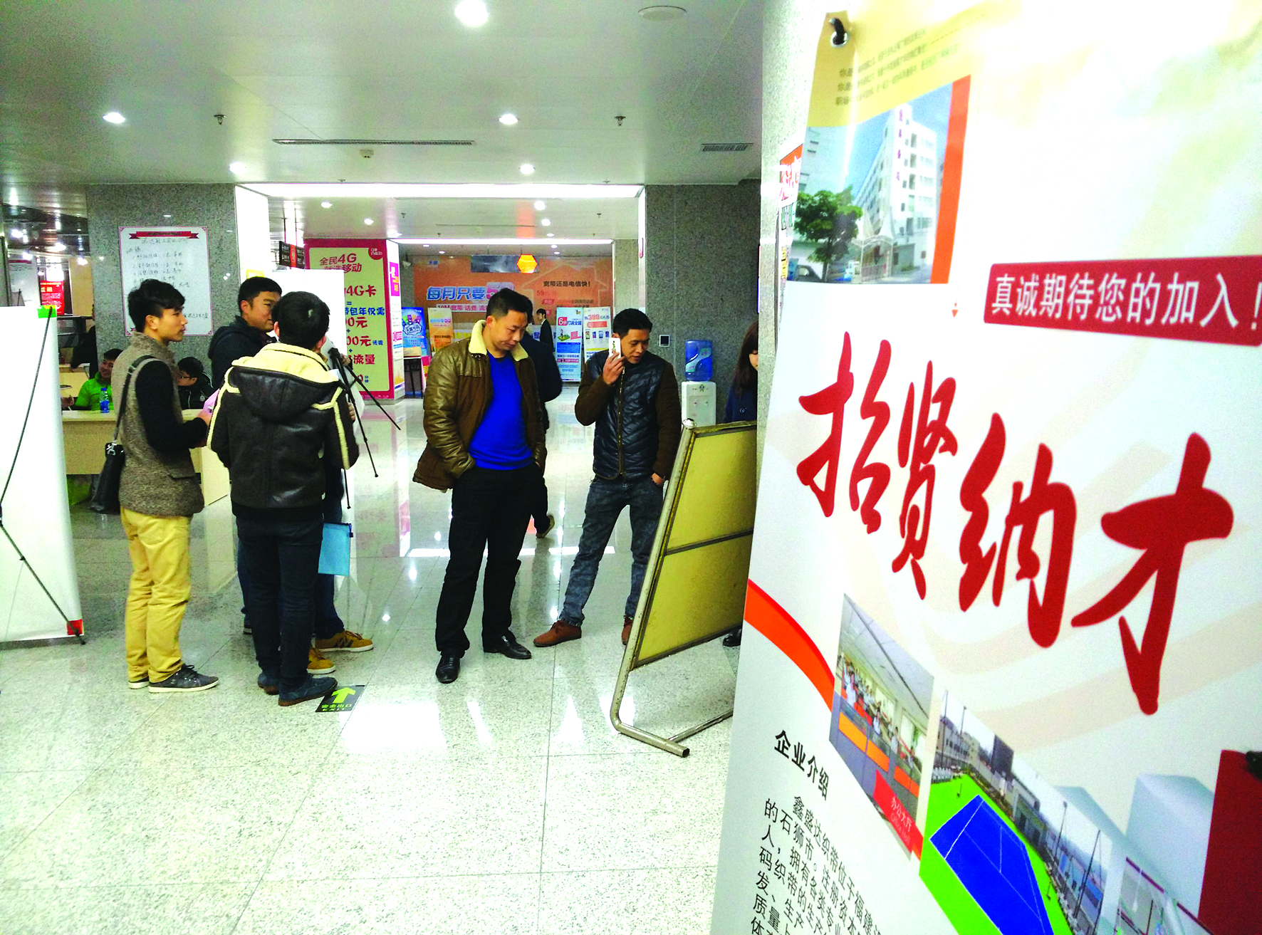 3月6日上午,石狮市人力资源大厦三楼,又一场新春人力资源招聘会在这里举行。与2月28日的节后第一场招聘会相比,当天的入场招聘企业更多了,一些过道及转弯处都摆放有桌子和企业的招聘海报。记者还看到不少企业人员急匆匆地赶到现场找主办方,希望能临时给他们增加一个“招聘位置”。
